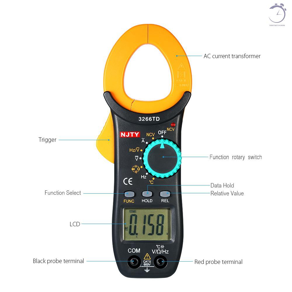 Giới thiệu Đồng hồ Kẹp kỹ thuật số NJTY 4000 Đếm Đồng hồ vạn năng dải tần tự động với NCV Kiểm tra Điện áp AC / DC AC Dòng điện Di động Cầm tay LCD Diaplay Đo điện trở Điện dung Tần số Liên tục Nhiệt độ Diode♠