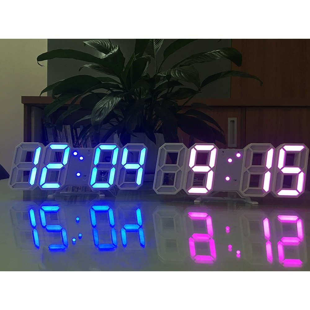 Đồng hồ LED Treo Tường 3D, Đồng Hồ Led Để Bàn Cao Cấp Ngoài khả năng hiển thị giờ nó còn tô điểm cho không gian sống của bạn thêm sang trọng Phù hợp với những nơi như: Văn phòng, công sở, chung cư, Khu vui chơi giải trí, khu thi đấu, phòng GYM tập thể hình, Trang trí gia đình như phòng khách, phòng ngủ, bếp… Có thể treo tường hoặc để bàn LED hiển thị thời gian (Giờ : Phút), có 2 chế độ hiển thị thời gian 12h và 24h, Chức năng hẹn giờ báo thức (AL) và chức năng báo lại (có thể điều chỉnh từ 5 phút tới 60 phút, mặc định là 05 phút), nhiệt độ, ngày tháng Sản phẩm sử dụng điện, có dây usb đi kèm, và kèm 1 cục pin để duy trì giờ khi mất điện Kích Thước sản phẩm: 24 cm * 9.4 cm * 1.7 cm Bộ sản phẩm bao gồm: đồng hồ led 3D kĩ thuật số + hướng dẫn sử dụng + cáp USB