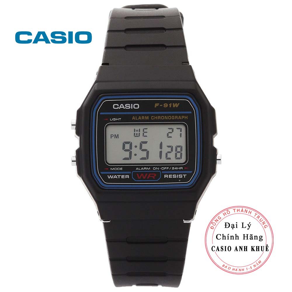 Đồng hồ nam Casio F91W-1 là mẫu đồng hồ kinh điển của Casio. Nó được giới thiệu lần đầu cách đây hơn 20 năm và gần như không có nhiều thay đổi gì kể từ ngày ra mắt. Đồng hồ nổi tiếng bởi sự bền bỉ, độ chính xác và tuổi thọ pin lâu. Nếu bạn tìm kiếm một chiếc đồng hồ để sử dụng hàng ngày, đi du lịch hoặc tham gia các môn thể thao. Đây sẽ là chiếc đồng hồ tin cậy và rẻ nhất bạn có thể tìm được.