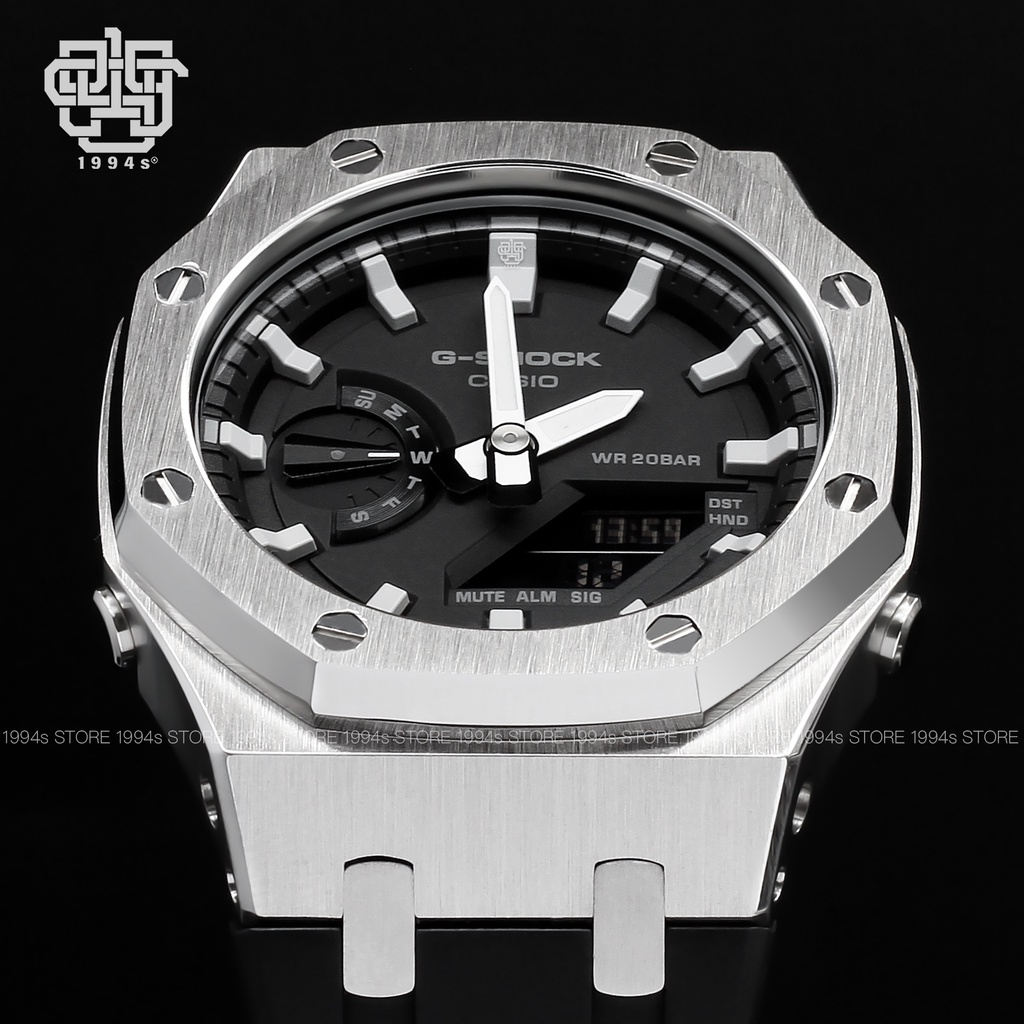 Giới thiệu Đồng hồ nam Casio G-Shock GA-2100-1A custom AP Royal Oak, Silver x Black, hàng chính hãng, bảo hành 05 năm