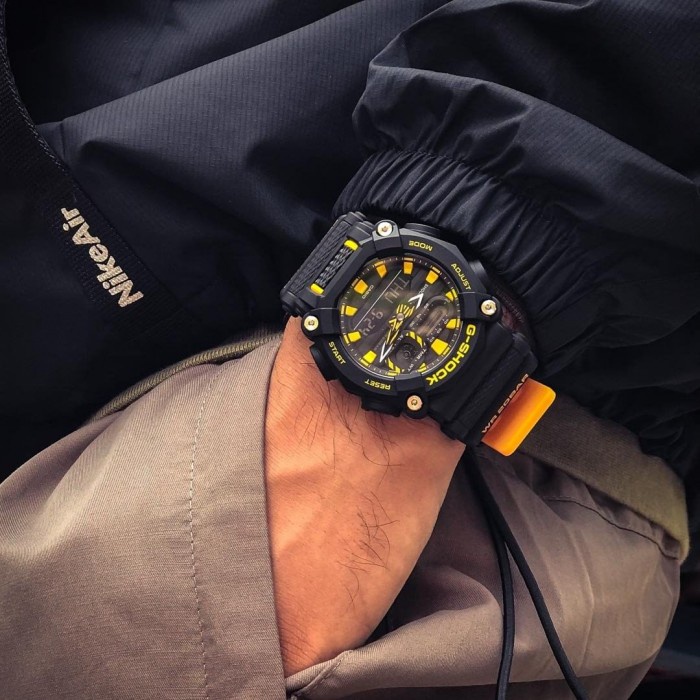 💥ĐẶC ĐIỂM CỦA SẢN PHẨM Đồng Hồ Điện Tử Nam Casio G-Shock WATCHSTORE GA-900A-1A9DR sở hữu các tính năng cực kỳ hữu ích sau đây: - Sản phẩm có thể đếm ngược thời gian bắt đầu do bạn chỉ định. - Đèn LED giúp chiếu sáng thuận tiện xem giờ ban đêm hoặc trong không gian tối. - Chức năng giờ thế giới gồm có 31 múi giờ và 48 thành phố khác nhau. Hiển thị tại các thành phố lớn và các khu vực khác nhau trên thế giới. - Định dạng khung giờ 12/24. - Bật/tắt âm có thể nhấn nút. - Giờ hiện hành hết sức thông dụng như: giờ, phút, giây, thứ, ngày. - Đồng hồ bấm giờ thể thao với độ chính xác lên đến 1/1000 giây. - Chức năng đếm ngược với khoảng cài đặt thời gian bắt đầu đếm ngược từ 1 phút đến 24 giờ. - Mẫu đồng hồ này có chức năng báo thức, giúp cho bạn có thể hàng ngày báo thức nhờ vào cài đặt cho đồng hồ. - Casio Gshock WATCHSTORE GA-900A-1A9DR có tuổi thọ cao, được trang bị khả năng chống nước lên đến 20ATM. Nhờ vậy mà người dùng có thể thoải mái khi sử dụng để chơi thể thao, tắm, bơi lội, lướt ván... - Phần dây đeo bằng nhựa bền bỉ, chống thấm hút mồ hôi.