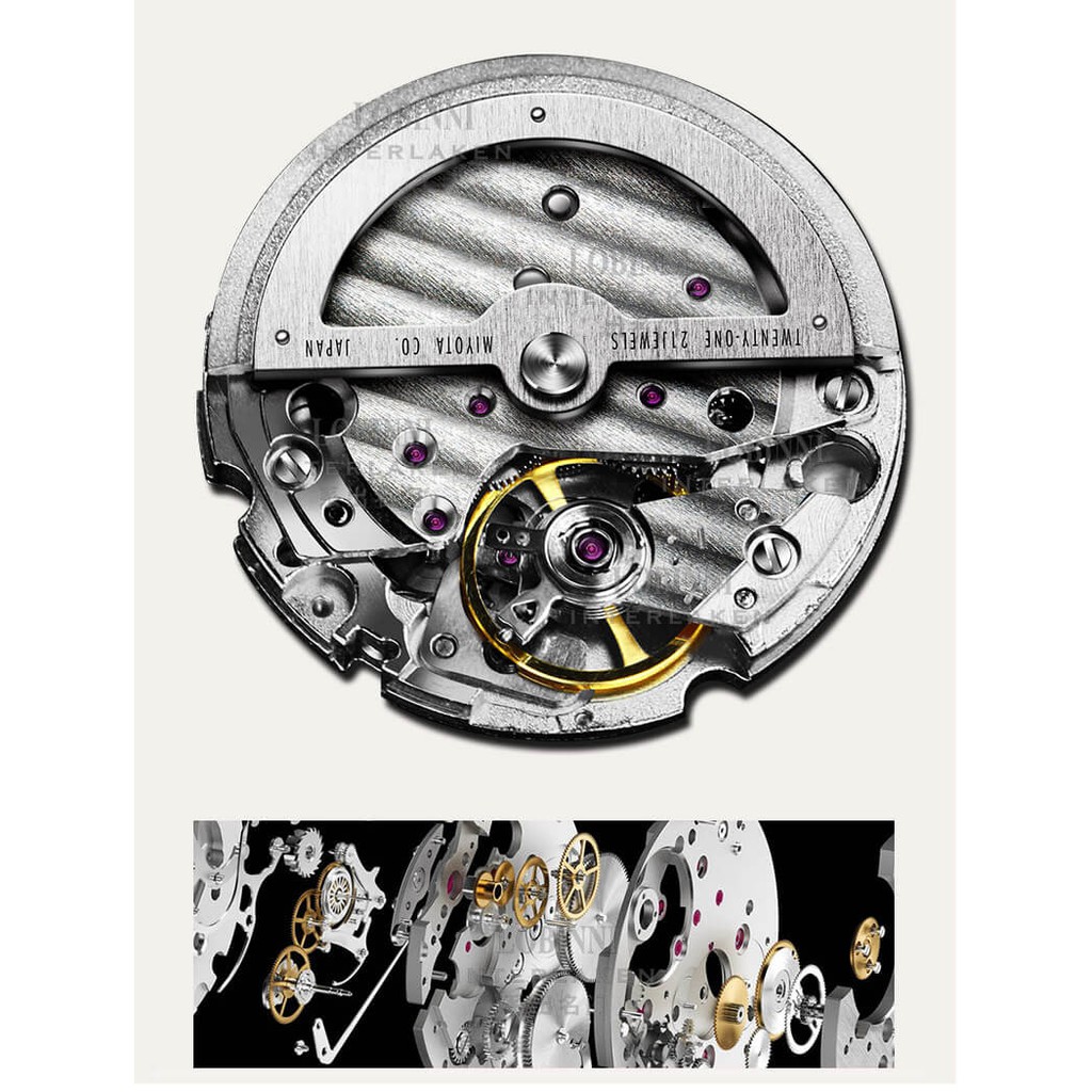 NGUỒN GỐC VÀ THÔNG SỐ SẢN PHẨM Thương Hiệu LOBINNI Mã sản phẩm L9021 Giới tính Nam Loại sản phẩm Đồng hồ Automatic Đường kính mặt 40 mm Chiều dày 11 mm Chất liệu vỏ Thép không gỉ 316L Chất liệu dây Dây da cao cấp Chất liệu mặt kính Sapphire Độ chịu nước 5 ATM Bảo hành 12 tháng