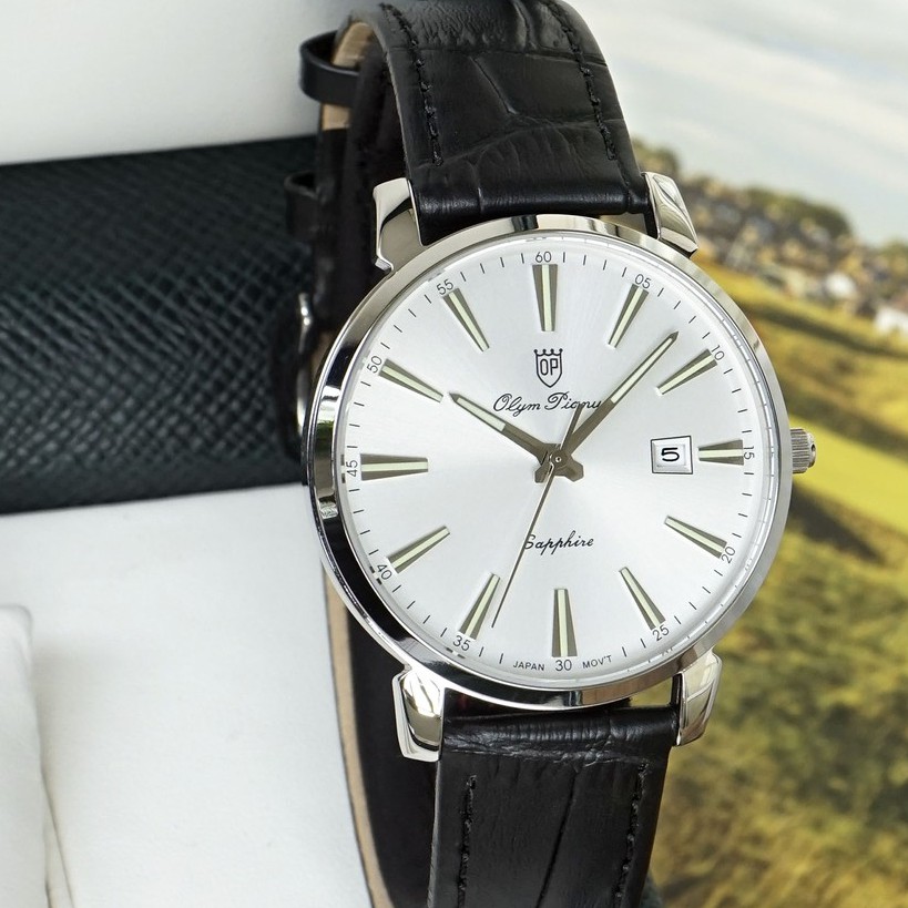 -Thương hiệu:Olym Pianus -Xuất xứ: Nhật Bản -Máy Nhật (Japan Movt) -Kiểu dáng: nam -Vỏ: thép không gỉ 316L mạ PVD -Dây: da -Mặt kính: sapphire chống xước -Độ chịu nước: 3ATM -Kích thước: 39mm -Kiểu máy: Quartz (điện tử)