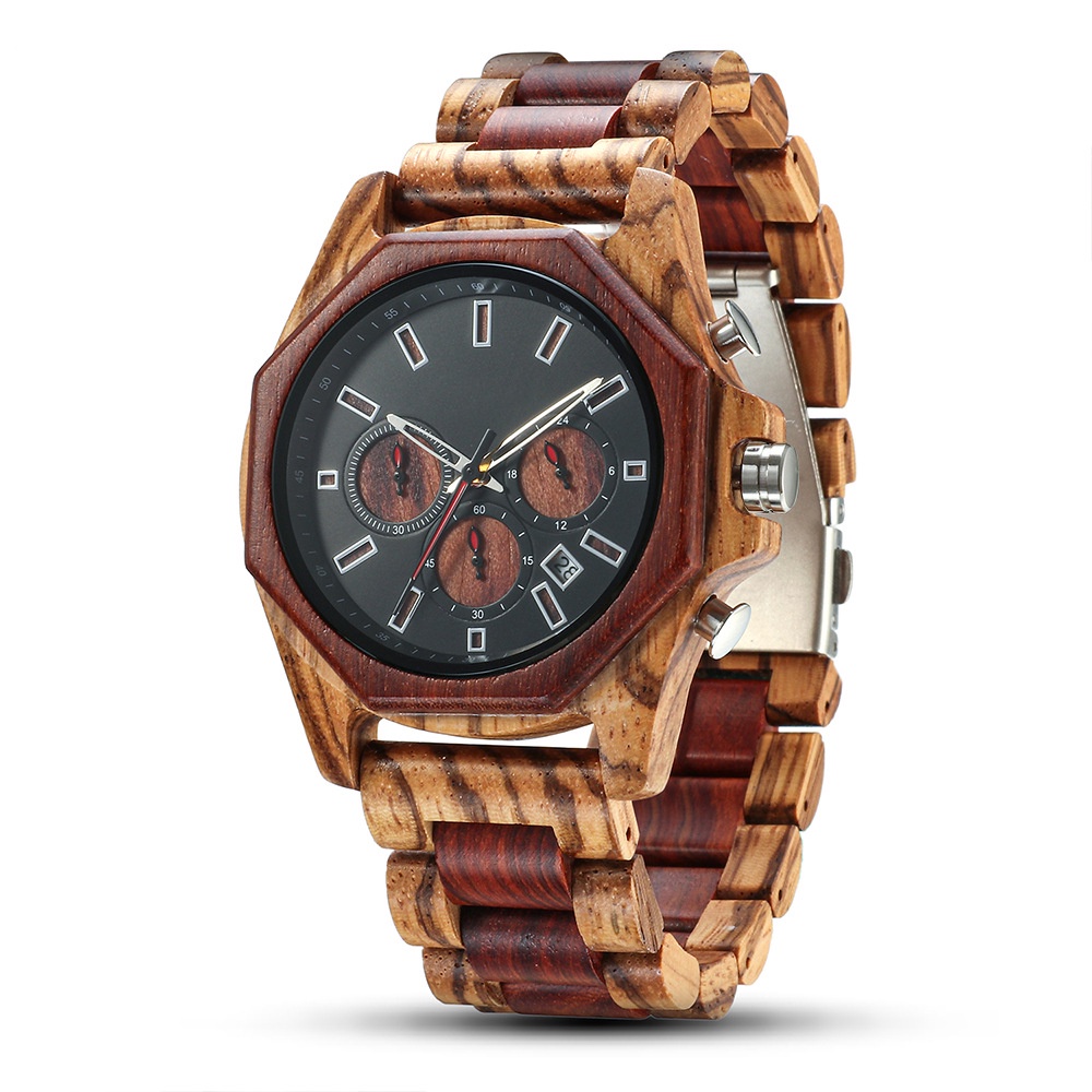 Các tính năng đặc biệt: Lịch Chức năng đặc biệt: Ba kim nhỏ Loại hiển thị: con trỏ Người áp dụng: Nam Phong cách: Kinh doanh Chống thấm nước: Không Loại chuyển động: Quartz Độ dày: 12,3 mm Đường kính quay số: 55mm Loại vương miện: vương miện hình nón đỉnh phẳng Loại dưới cùng: Bình thường Chất liệu gương: Gương kính cường lực khoáng Phong cách khóa: Khóa gấp đơn Chất liệu khóa: Thép không gỉ Chất liệu dây đeo: Gỗ Hình dạng quay số: kim cương Chất liệu vỏ: Gỗ