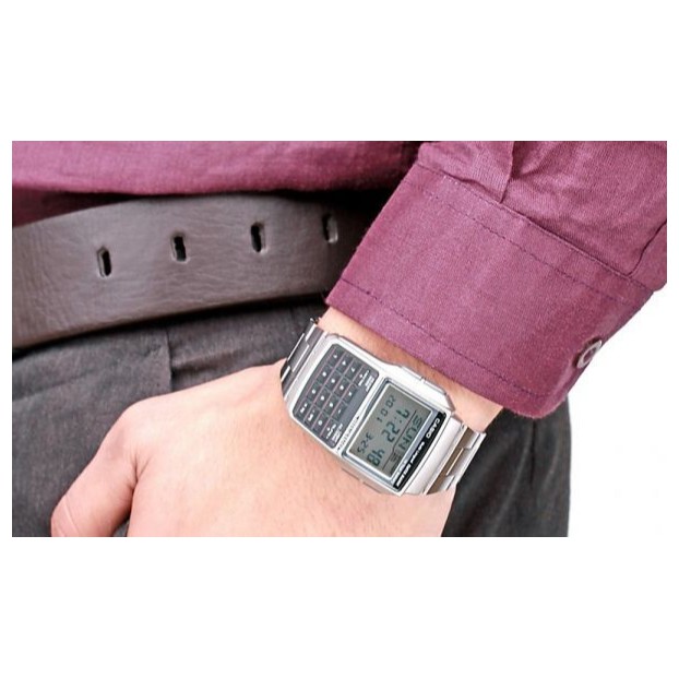**Casio DBC-32D-1ADF là mẫu đồng hồ được giới trẻ yêu thích với phiên bản dây đeo kim loại, thiết kế hoài cổ cùng nền mặt số điện tử hình vuông hiện thị đa chức năng, kèm theo dãy phím bấm bên dưới, gợi lên hình ảnh của những mẫu Casio huyền thoại một thời. •Kho dữ liệu với bộ nhớ lên tới 25 mục nhập • Kho dữ liệu hỗ trợ ký tự cho 13 ngôn ngữ • Máy tính 8 số • Chuyển đổi tiền tệ • Năm chế độ báo đa chức năng • Giờ kép để theo dõi hai thời gian • Tuổi thọ pin 10 năm