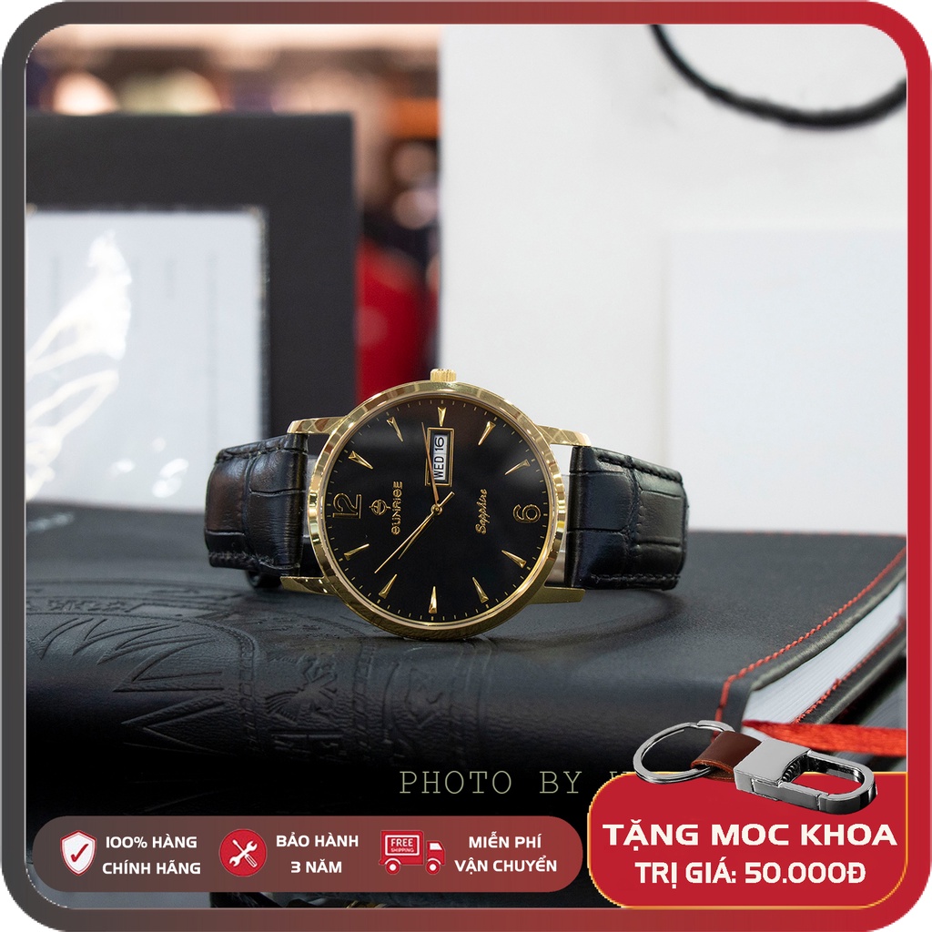 Giới thiệu Đồng hồ nam, đồng hồ dây da Sunrise DM778SWA full box, kính sapphire chống xước chống nước