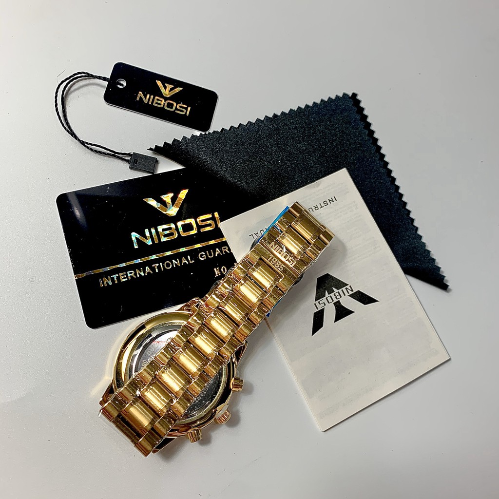THÔNG SỐ KỸ THUẬT: Đồng Hồ Nam NIBOSI NI2390 Dây Thép Cao Cấp Chạy 6 Kim - Tặng Pin Dự Phòng Và Cây Tháo Mắc (Dây Vàng, Mặt Đen)