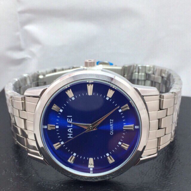 Giới thiệu Đồng hồ nam, nữ Halei 502 dây trắng mặt xanh lịch lãm
