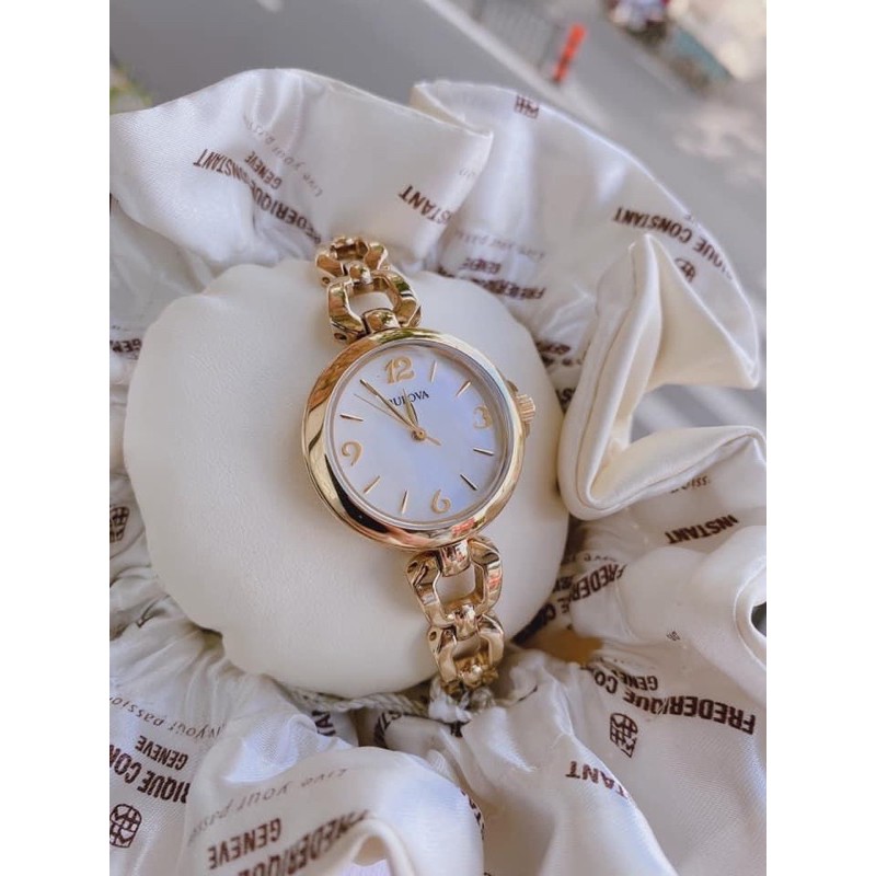 🍂🍂Bulova mang đến sự thanh lịch dịu dàng cho chị em 🍀 Tone gold sang trọng, chất liệu hợp kim không rỉ, khó bạc màu 🍀 Mặt đồng hồ Size Case mặt 30mm , mặt đồng hồ ánh ngọc trai ❇️ Dây dày 6mm rộng 15mm ❇️ Chống nước 10m ❇️ Bảo hành 12 tháng 💰sale