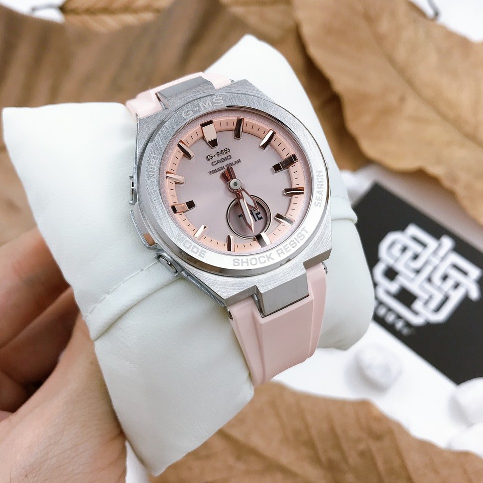 - Các tính năng: G-MS Từ dòng đồng hồ BABY-G G-MS dành cho phái nữ hiện đại năng động và tinh tế, một bộ sưu tập mẫu đồng hồ bằng kim loại và nhựa đã ra đời. Vẻ sắc nét tổng thể của thiết kế này đến từ vỏ, gờ và chốt làm bằng kim loại rắn cũng như ánh kim của vạch giờ. Dây đeo bằng nhựa tạo nên kiểu dáng thời trang giản dị dành cho người trưởng thành. Ngoài mẫu đồng hồ màu trắng và bạc đơn giản, dòng sản phẩm này còn có gờ màu vàng hồng nữ tính kết hợp với màu trắng hoặc đen. Cấu trúc mới cho phép tạo ra đồng hồ có mặt nhỏ hơn và vỏ mỏng hơn, phù hợp cho cả khi làm việc và giải trí. Về chức năng, mẫu đồng hồ này có Giờ thế giới, Tough Solar, đèn LED và nhiều hơn nữa. Thiết kế sành điệu và các tính năng thiết yếu của mẫu đồng hồ này sẽ luôn sát cánh cùng người phụ nữ năng động suốt cả ngày. Tough Solar Chiếu sáng cực mạnh