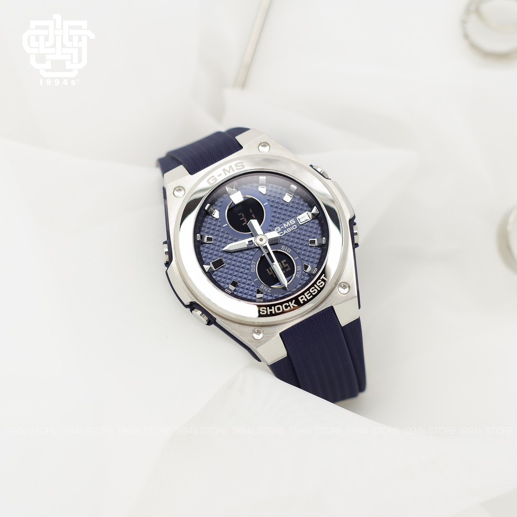 - Các tính năng: Từ dòng đồng hồ G-MS dành cho phụ nữ hiện đại năng động và tinh tế, một bộ sưu tập mẫu đồng hồ sành điệu với thiết kế đinh tán đã ra đời. Cùng với lớp vỏ mạnh mẽ, những vết cắt trông như chiếc đinh tán tại các vạch 3, 9 và 12 giờ cũng như trên toàn bộ mặt đồng hồ tạo nên một thiết kế thật khác biệt. Dây đeo của những mẫu này có lớp hoàn thiện mang họa tiết hình chữ chi. Điều này khiến chất liệu nhựa trông giống như vải, tạo nên vẻ cổ điển cho chiếc đồng hồ. Những mẫu này có các lựa chọn màu sắc vành bezel sau: màu vàng hồng trẻ trung nữ tính của chiếc MSG-C100G và màu bạc sang trọng của chiếc MSG-C100. Về chức năng, những mẫu này có điểm nổi bật là khả năng chống va đập cao và khả năng chống nước ở độ sâu 100 mét phù hợp với lối sống của phụ nữ năng động ngày nay. Mặt đồng hồ có hai màn hình số hiển thị ngày hiện tại, thứ trong tuần, thông tin về Giờ thế giới, v.v.