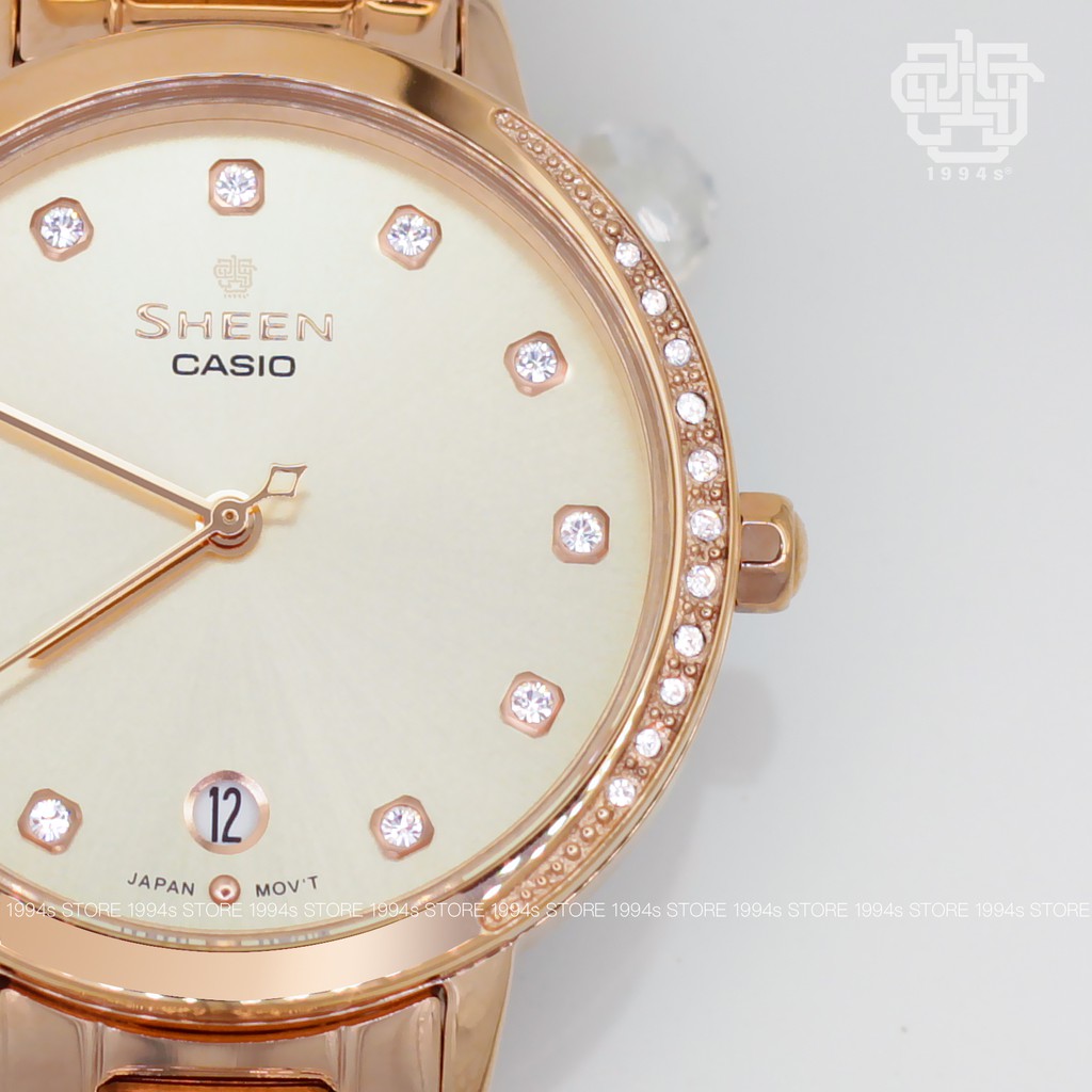 Giới thiệu Đồng hồ nữ Casio Sheen SHE-4056 / SHE-4056PG-4A đính đá, chống nước 50m, size 32mm, hàng chính hãng bảo hành 01 năm