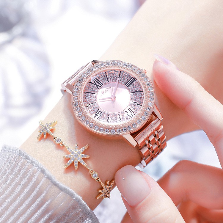 Đồng hồ nữ chính hãng, đồng hồ nữ dây kim loại MEIBIN đính đá cao cấp, cực sang, mặt tròn, không thấm nước