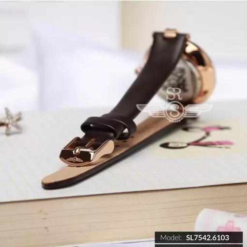 Đồng hồ nữ SR WATCH SL7542.6103 đen thiết kế thời trang cá tính, sang trọng, vỏ thép không gỉ 316L mạ vàng hồng công nghệ PVD, mặt kính Sapphire Glass chống trầy, dây da hiện đại dành riêng cho phái đẹp