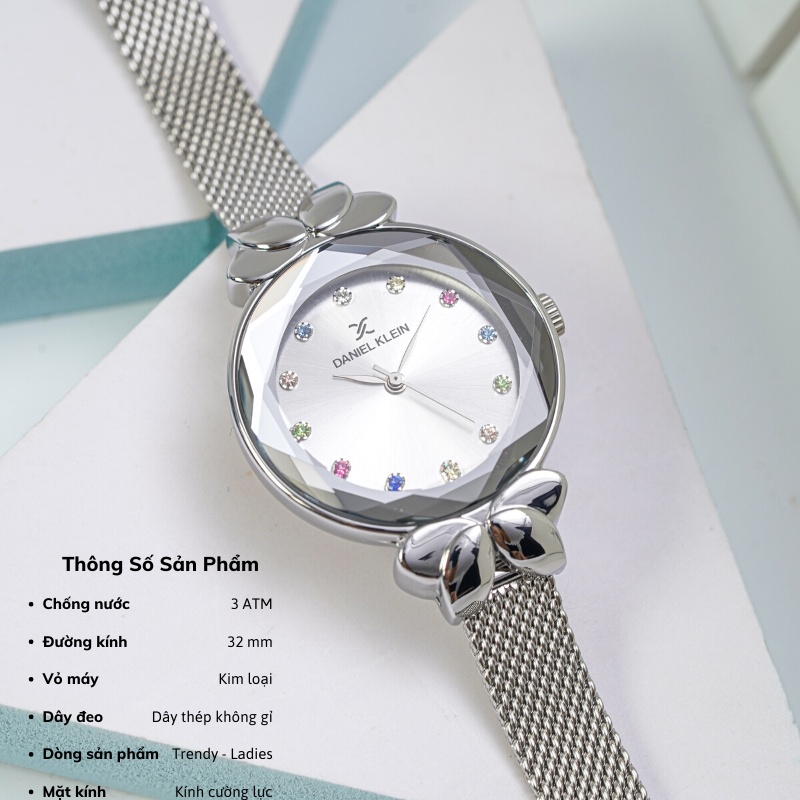 Giới thiệu Đồng hồ nữ Daniel Klein Watch DK.1.12554 mặt nhỏ đính đá, kính cứng chống xước, chống nước, dây thép đeo tay cao cấp