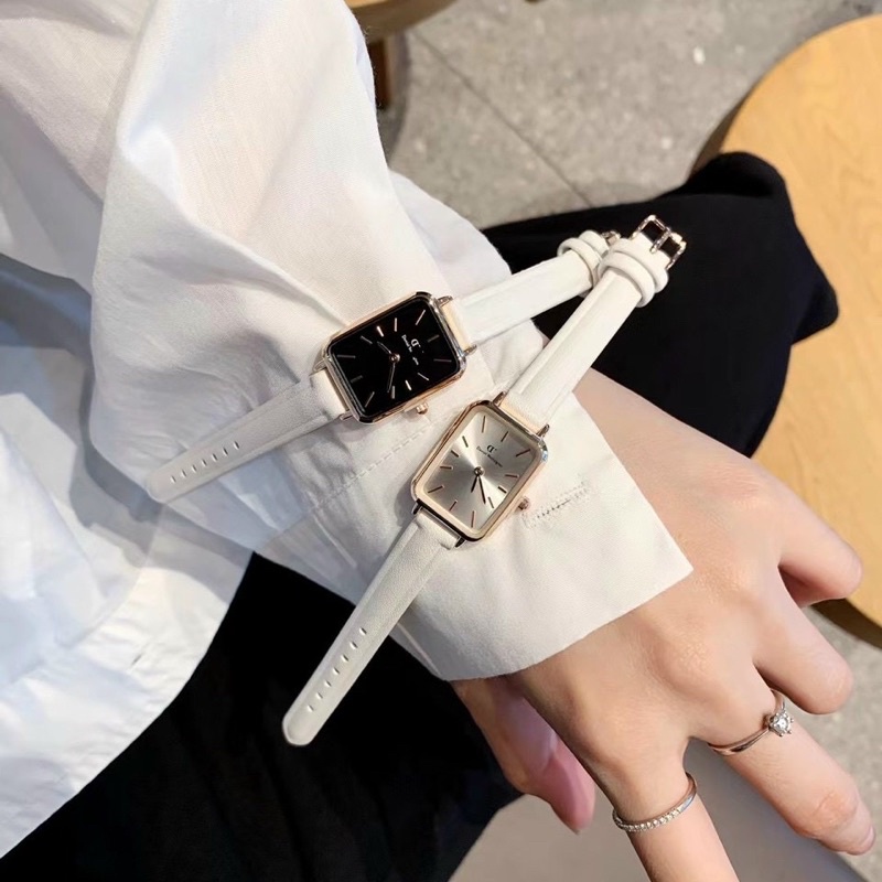 Đồng Hồ Nữ Đeo Tay Dây Da Mặt Chữ Nhật Thời Trang 2021