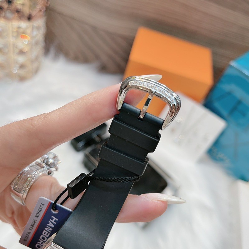 Hanboro by Huboler phiên bản tựa Ri.chard mi.ller 23 tỷ của Lệ Quyên nha . Viền silver, lõi xanh 💊 Long lanh full pha lê ✔️Full box ✔️Mặt đồng hồ Size: 36mm ✔️Dây dày 6mm rộng 15mm ✔️Chống nước 5m ✔️Bảo hành 12 tháng 🆘Dây sillicon thời thượng 💸Máy Nhật bền bỉ, mặt full đá lấp lánh kiêu sa, dây silicon đen