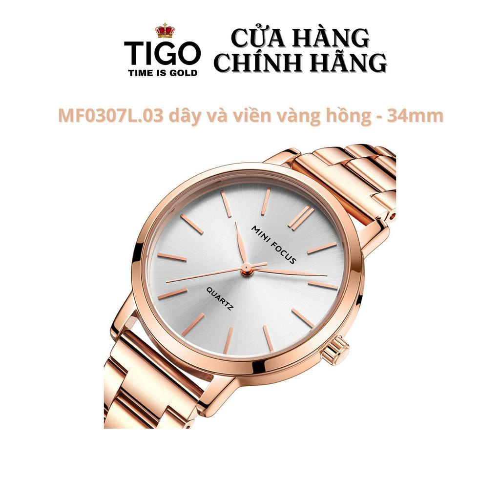 Đồng Hồ Nữ MINI FOCUS MF0307L.03 Dây Thép Vàng Hồng Viền Vàng Hồng Thép Không Gỉ Cao Cấp Mặt Tròn Đường Kính 34mm Chống Nước