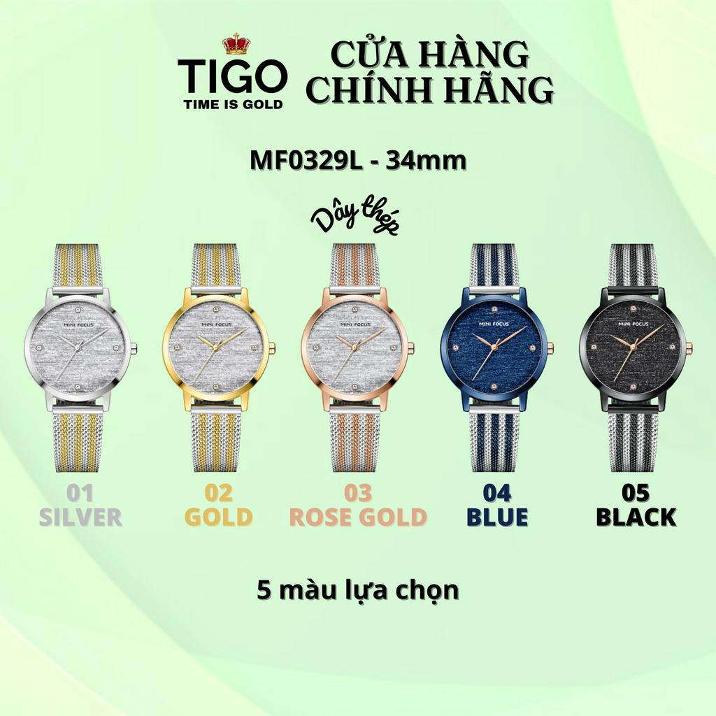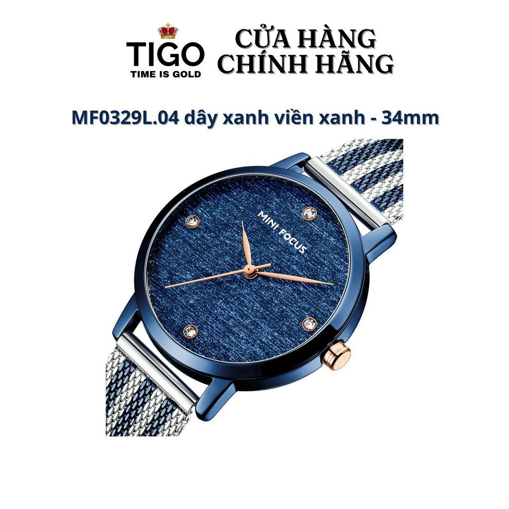 Đồng Hồ Nữ MINI FOCUS MF0329L.04 Dây Thép Xanh Viền Xanh Thép Không Gỉ Cao Cấp Mặt Tròn Đường Kính 34mm Chống Nước