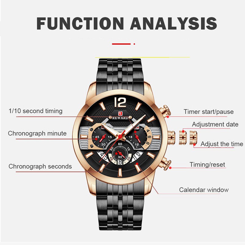 Giới thiệu Đồng Hồ Quartz Chronograph Chống Thấm Nước Chất Liệu Thép Không Gỉ 81013 Thời Trang Cho Nam