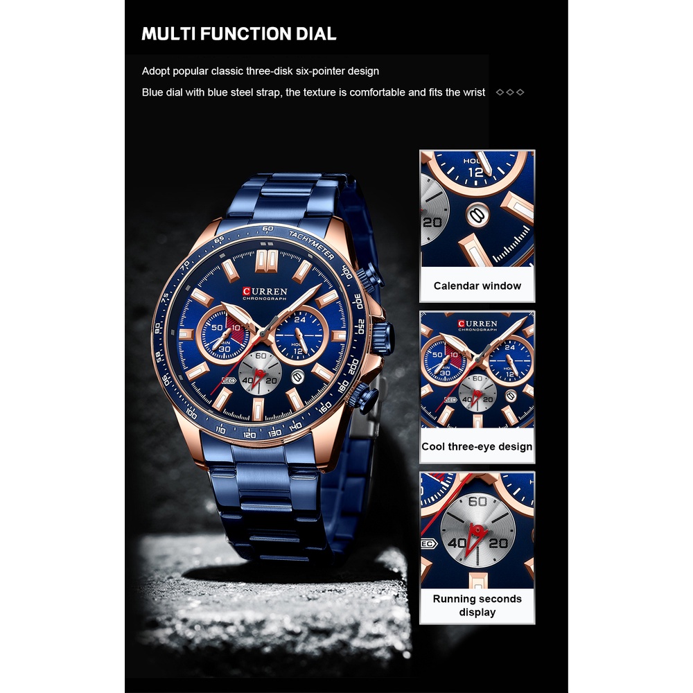 Giới thiệu Đồng Hồ Quartz CURREN Ba Mắt Dạ Quang Chống Thấm Nước Chất Liệu Thép Không Gỉ