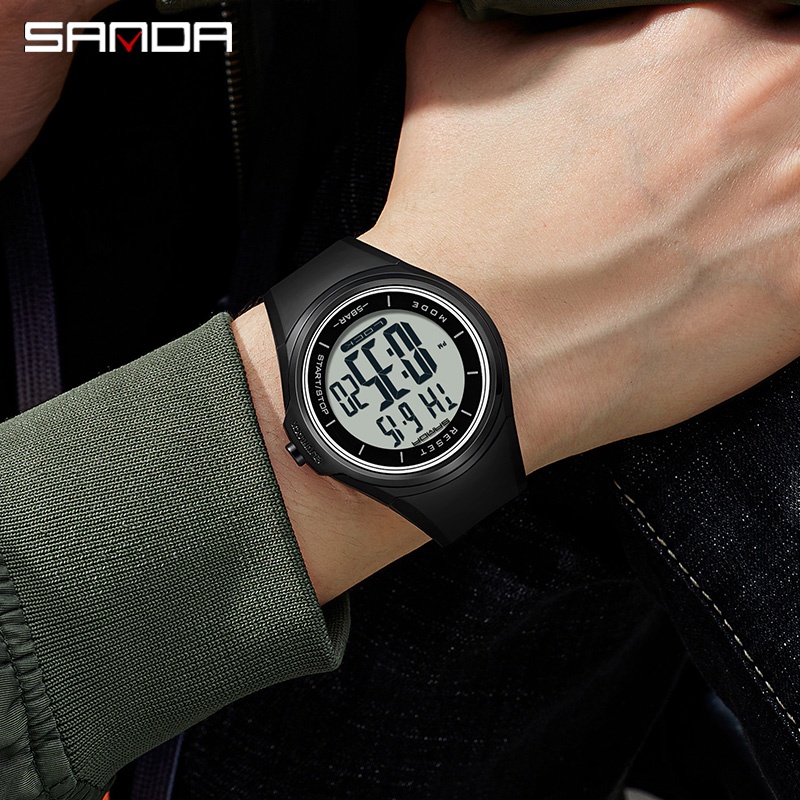 Thương hiệu: Sanda Phong cách: kinh doanh, hợp thời trang, quyến rũ, đơn giản, ngoài trời Loại: Đồng hồ thạch anh Phong trào: Phong trào nguyên bản Nhật Bản Chống thấm nước: Chống thấm nước tuổi thọ 50 mét - Gương kính cường lực nguyên chất -Thiết Kế đa chức năng ngoài trời -Chất Liệu: ABS Dây đeo: dây đeo cao su Chất liệu dây đeo: Cao su Khóa: khóa pin Thông tin chi tiết: -Kích Thước mặt số: 43mm -Chiều Dày: 13,5mm Chiều dài tổng thể: 264mm Trọng lượng: 52g