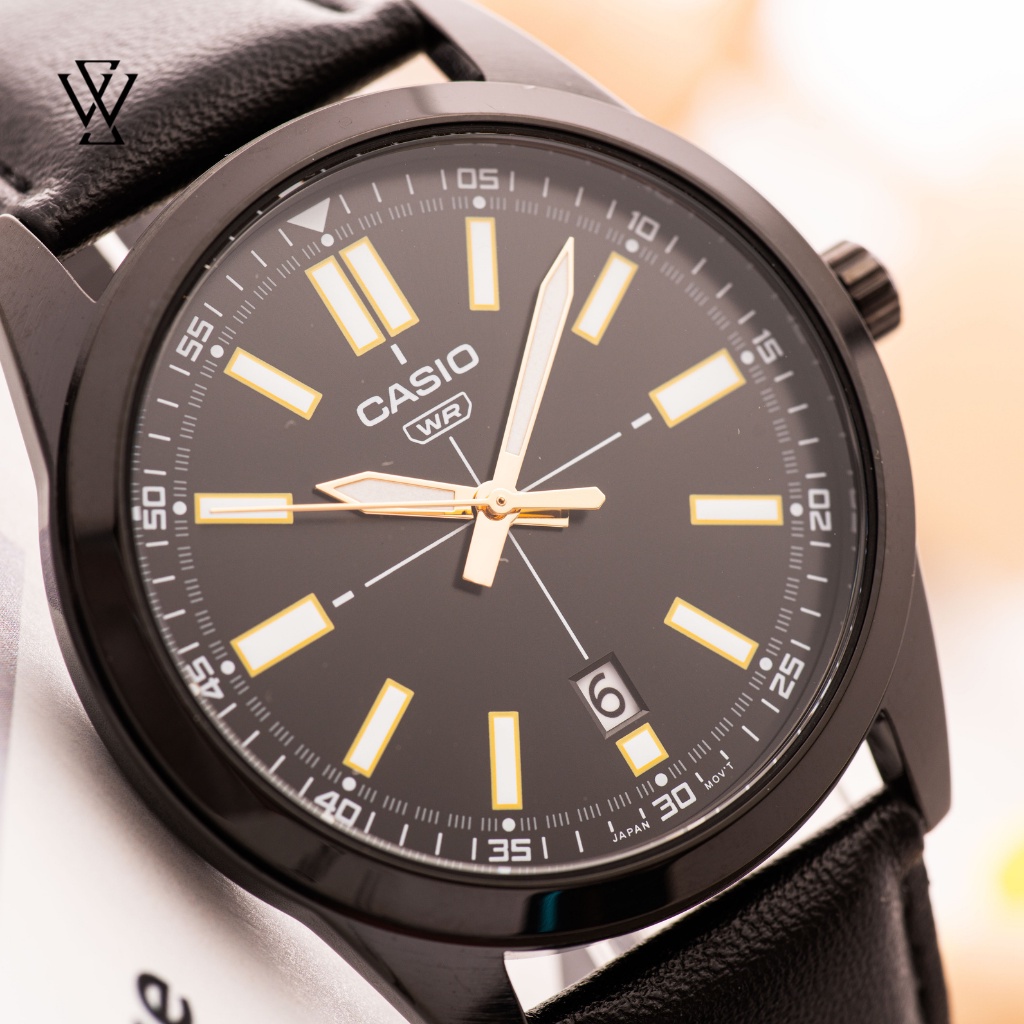 - Đồng hồ Casio nam dây da chắc chắn được áp dụng cho dòng đồng hồ MTP-VD02BL-1EUDF có các tính năng: xem giờ với 3 kim, dạ quang, lịch ngày, thiết kế đề cao tính đơn giản kết hợp màu sắc sang trọng, bắt mắt.