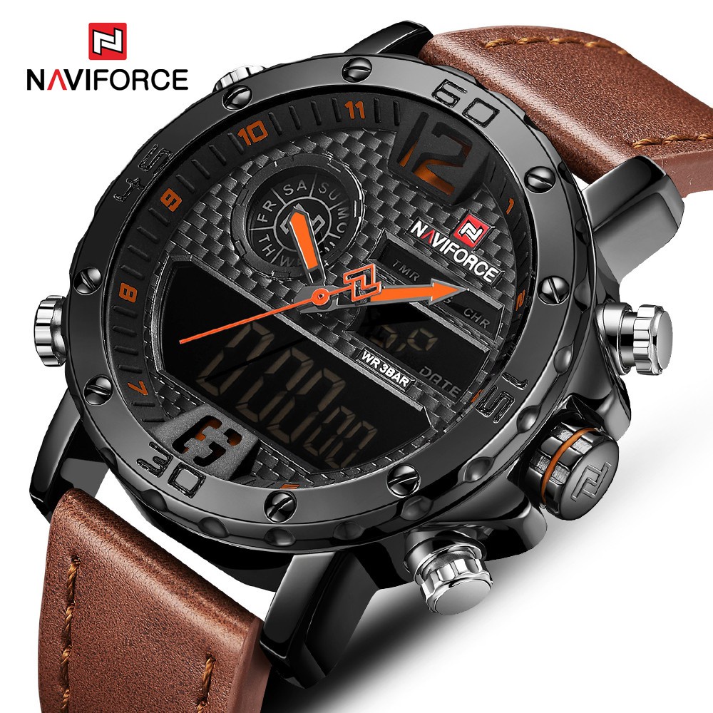 Giới thiệu Đồng Hồ Quartz NAVIFORCE Kỹ Thuật Số Chống Thấm Nước Với Dây Đeo Da 9134