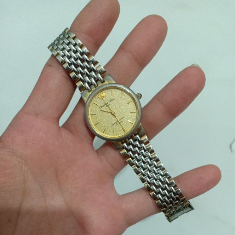 đồng hồ si nhật nam nữ hiệu CHRISTINE COLLAS PARIS mặt kính sapphire phù hợp nam tay nhỏ với nữ tay to nước si mạ có bạc mà nhìu như ảnh kính sapphire chống xước size mặt 33mm đo cả núm size dây 18mm chống nước không bảo hành vì hàng si bảo hành máy 1 tháng