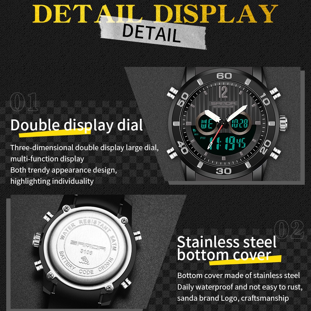 Giới thiệu Đồng hồ thể thao SANDA 3106-11 màn hình LED chống thấm nước đa năng