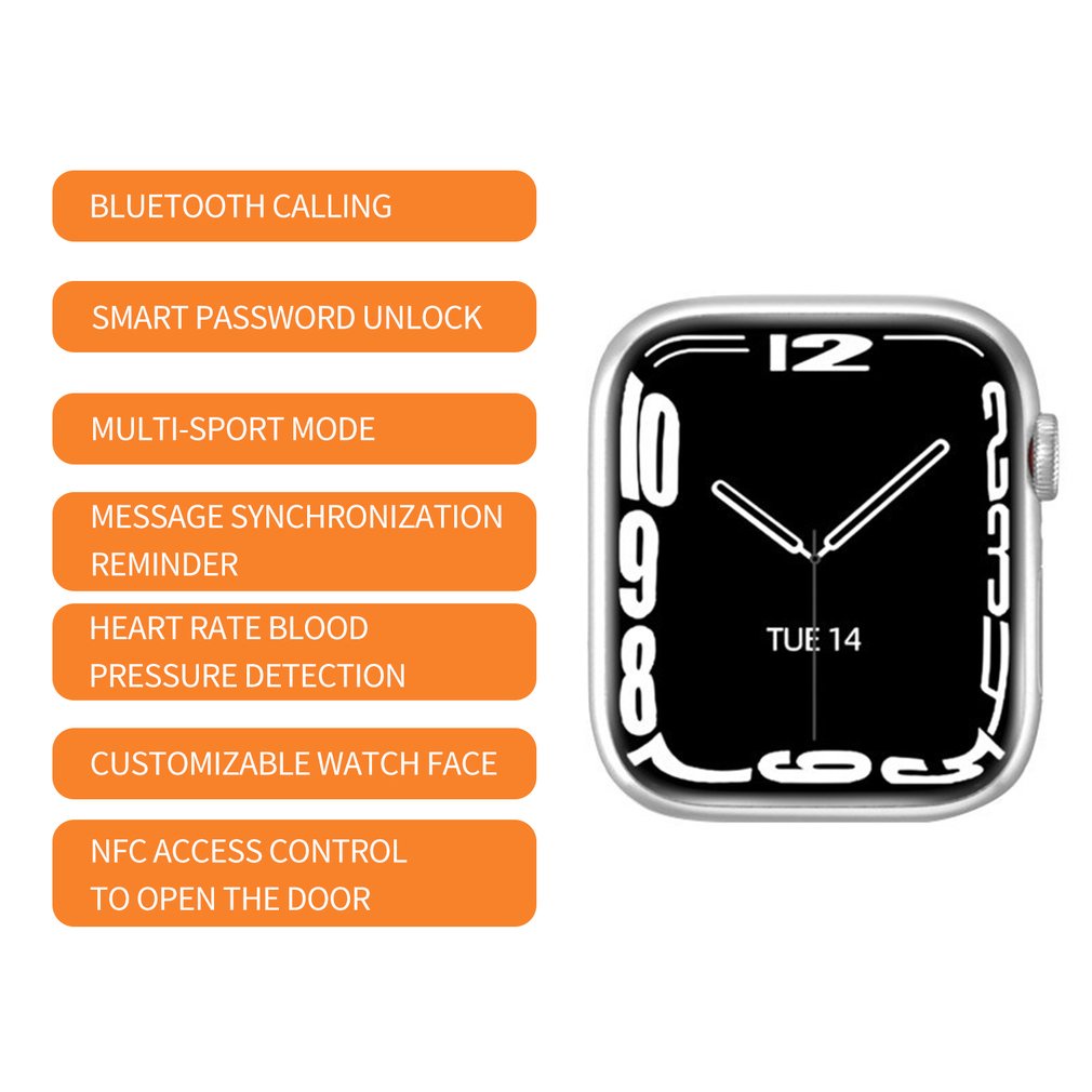 Đặc điểm: 1. Chức năng GPS, tìm điện thoại của bạn: Đồng hồ này có chức năng ngăn ngừa mất mát, gọi điện thoại hoặc đồng hồ của bạn, có thể giúp bạn tìm điện thoại bất cứ lúc nào. Đặt thời gian để nhắc bạn tập thể dục và thay đổi lối sống không lành mạnh. Các tính năng khác bao gồm đồng hồ báo thức, danh bạ, thời tiết, v.v. 2. Thông báo: Đồng bộ hóa trung tâm thông báo trên điện thoại đồng bộ hóa thông báo cuộc gọi đến (SMS, Fackbooks, INS, Twitter, Whatsapps, v.v.), nhắc nhở cuộc gọi đến. Hỗ trợ trao đổi dây đeo 42/44 loại khác nhau, có thể giúp bạn thoải mái hơn khi đeo. 3. Cuộc gọi: Thực hiện và nhận cuộc gọi. Sau khi kết nối không dây và điện thoại thông minh, bạn có thể điều khiển điện thoại để chụp ảnh, giúp bạn sử dụng điện thoại thuận tiện hơn. Bạn có thể tải ảnh của riêng mình lên đồng hồ làm mặt đồng hồ. Chức năng chống thấm nước, có thể ngăn mồ hôi ảnh hưởng đến hoạt động. 4. Làm cho cuộc sống khỏe mạnh hơn: Phát hiện nhịp tim / phát hiện áp suất máu / phát hiện oxy trong máu, giúp phát hiện các vấn đề về sức khỏe. Máy nghe nhạc không dây, máy nghe nhạc trên điện thoại di động điều khiển từ xa. Nó cũng có các chức năng như nhắc nhở cuộc gọi, đẩy thông tin, nhắc nhở khi ít vận động, v.v. 5. Theo dõi giấc ngủ: Ghi lại và phân tích trạng thái giấc ngủ của bạn một cách khách quan và khoa học. Nó có thể đếm số bước, lượng calo, khoảng cách giám sát. Với chế độ thể thao, phù hợp để chạy, leo núi, bóng đá, v.v.