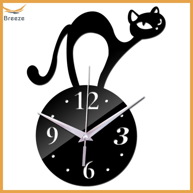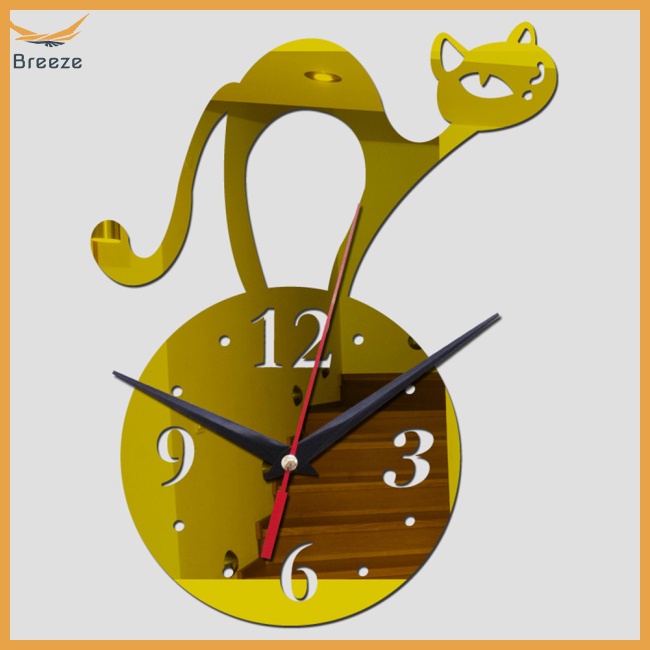 Giới thiệu Đồng Hồ Treo Tường Mặt Gương Không Khung Hình Mèo Sáng Tạo Trang Trí Phòng Khách