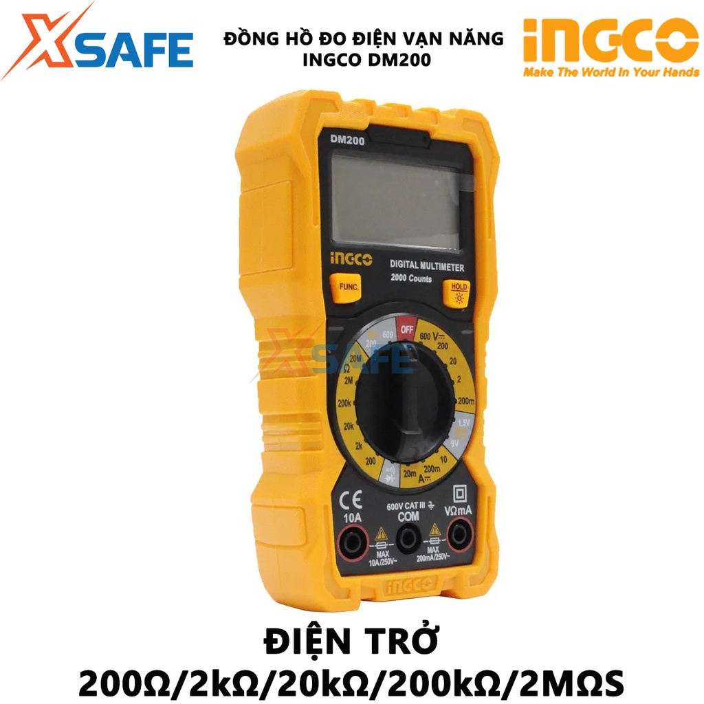 Dụng cụ và thiết bị tiện ích > Thiết bị và phụ kiện xây dựng > Dụng cụ đo lường > Đồng hồ vạn năng kỹ thuật số INGCO DM200 6000 số đếm - Màn hình LCD - [CHÍNH HÃNG][XSAFE]