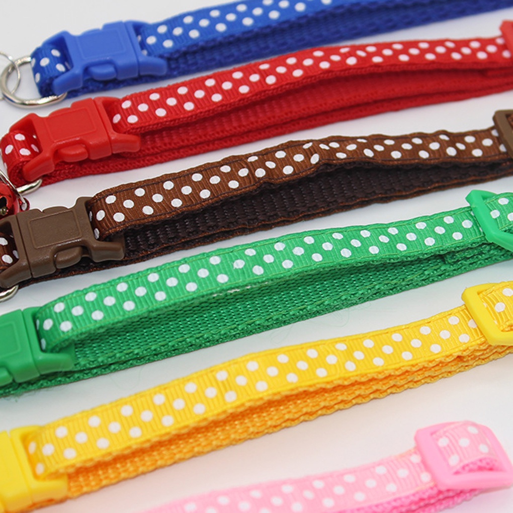 Giới thiệu [double]Small Pet Nylon Patch Copper Bell Collar Adjustable Colorful Choker Dot Pattern Pet Necklace