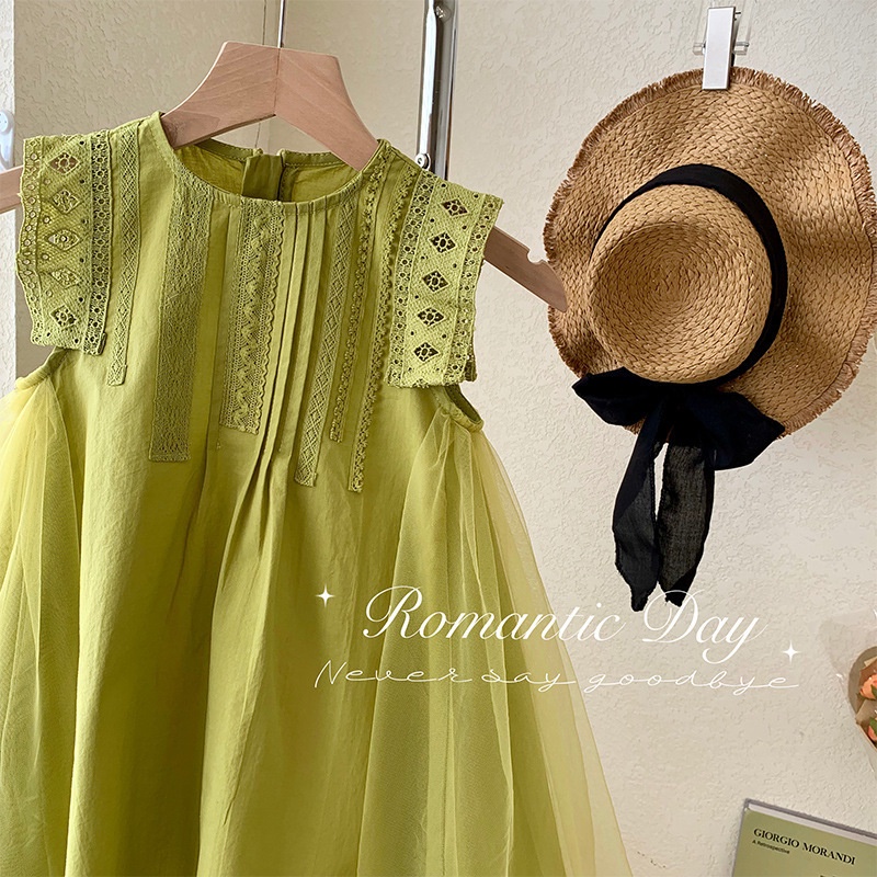 Style: Princess Fabric name: cotton blend Skirt Category: suspender skirt/vest skirt Main fabric composition: Cotton Suitable age group: children (3~8 years old, 100~140cm) Style: short sleeve Skirt style: A- line skirt Color: green and yellow Suitable height: 90cm,100cm,110cm,120cm,130cm,140cm,150cm
