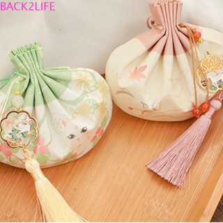 BACK2LIFE Túi Dây Rút Đa Chức Năng Màu Trơn Họa Tiết Hoa Phong Cách Trung Quốc Cổ Điển