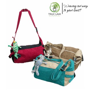 Túi Trống Túi Du Lịch Đeo Chéo Vải Gai Gắn Thú Nhồi Bông - Trúc Lâm Handmade