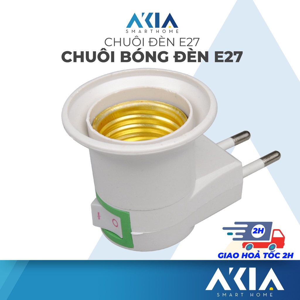 Dụng cụ và thiết bị tiện ích > Thiết bị mạch điện > Ổ điện và dây nối > [Mã BMLTA35 giảm đến 35K đơn 99K] Đui bóng đèn chân xoáy E27 AKIA, có công tắc bật tắt an toàn, jack cắm dễ sử dụng