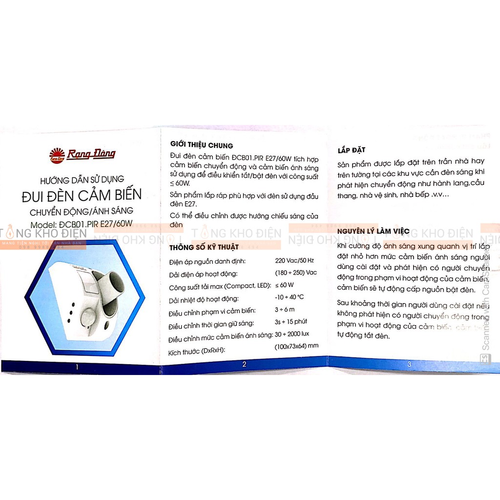 Đui cảm biến chuyển động/ánh sáng RẠNG ĐÔNG ĐCB01.PIR E27/60W