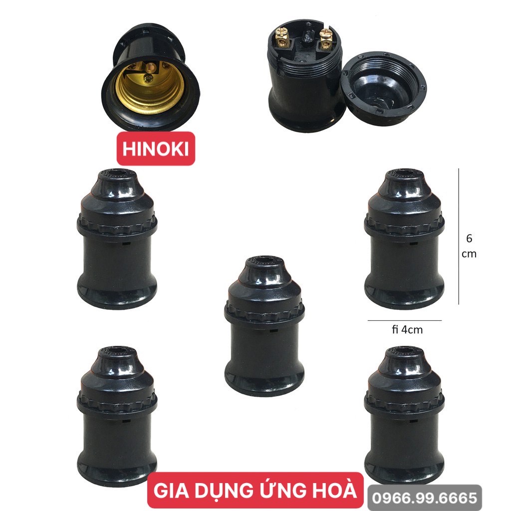 +Đui đèn xoáy HINOKI là đui ren xoáy kích thước 27mm, sử dụng cho các loại bóng đèn thông dụng nhất hiện nay như: các bóng đèn Led, bóng đèn sợi đốt, bóng đèn compact, bóng chữ U….. +Đui được thiết kế kín ở trên và luồn đấu dây qua 2 rãnh 2 bên nên chống được nước mưa khi treo thả ngoài trời." "#Thông tin kỹ thuật: *Điện áp: AC 220V (110-240V) *Công suất: 1w-100w *Vật liệu: nhựa cứng chống cháy *Kiểu dáng: treo thả thông thường *Màu sắc: Đen/Trắng *Chống nước: Có (khi treo thả) *Đuôi đèn: HINOKI: đui xoáy 27mm *Kích thước SP: fi 4,5x6cm" "#Thông tin xác định: *Bộ sản phẩm: 10xđui đèn E27 *Hộp DxRxC=20x8x6cm; KL=0,250kg *Sản xuất: Việt Nam" - Xuất Xứ: Việt Nam - Cửa Hàng: Bảo Khánh - Địa Chỉ: Thôn Ao Bông, Xã Quảng Phú Cầu, Huyện Ứng Hòa, Tp Hà Nội - Liên hệ: 0966996665