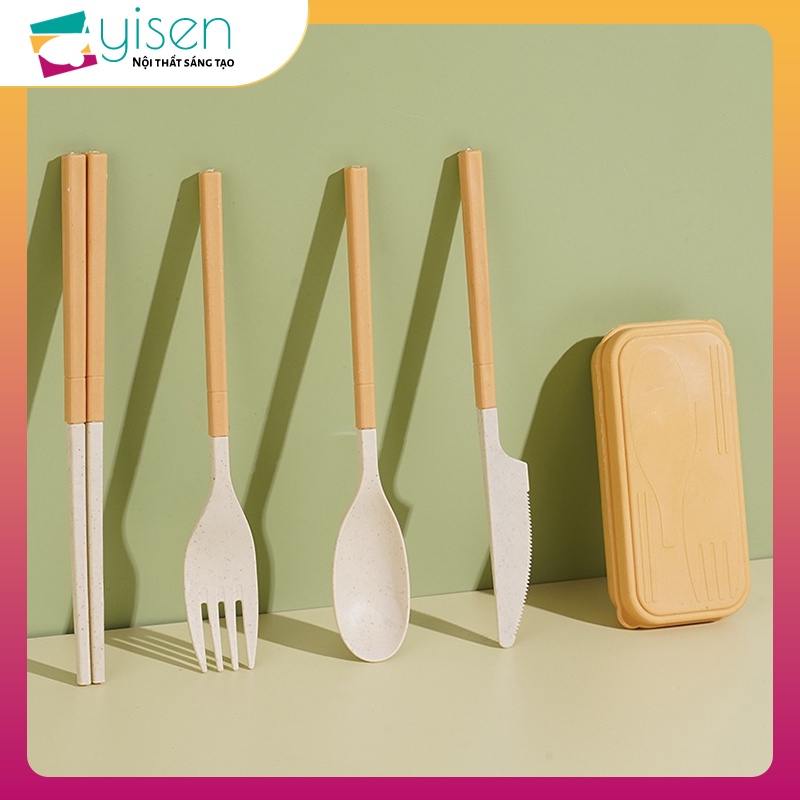 Dao làm bộ đồ ăn bằng rơm lúa mì Nhật Bản, nĩa, thìa, đũa ba bộ hộp đựng bộ đồ ăn di động gấp