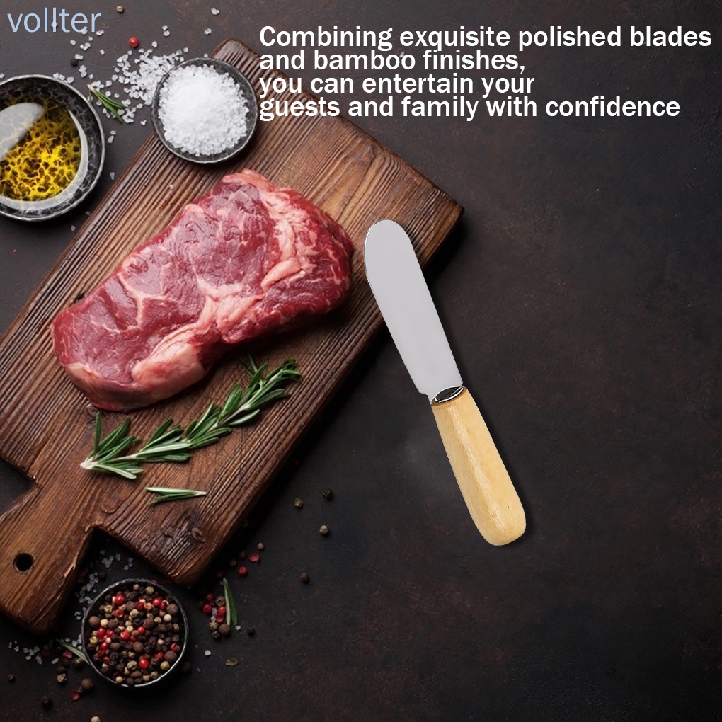 Description:You can entertain your guests without worries because the butter spatula is designed with exquisite slicer, looks elegant.The butter spatula is ergonomically designed, easy to catch, convenient for you to spread cream.This kind of butter spatula is made of stainless steel material, is not easy to corrose and rust, and which is reusable that can serve you for a long time.There is designed with a handle that convenient for you to take, and easy to storage.This spreader is suit for wiping away butter, cream, sauce, made dish, mustard and other foods. Specification:Material: wood, stainless steel.Color: show as pictures.Size: 10.2*2cm. Package included: 1x wooden handle spatula.