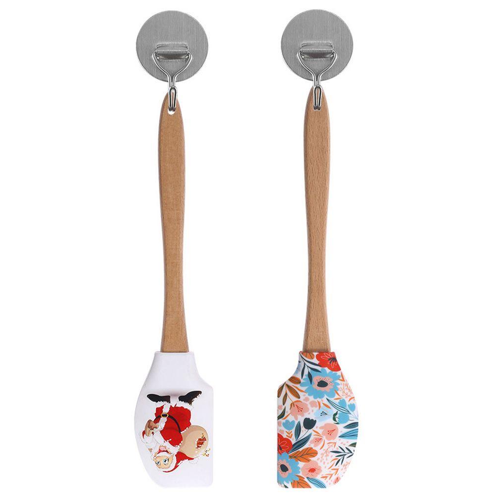 Cảm ơn bạn đã thông cảm! Bánh Scraper Butter Spatula Nướng Dụng cụ trang trí nhà bếp Đồ dùng nhà bếp Xẻng Công cụ làm bánh gia dụng Bánh kem Bánh ngọt Tự làm bột trong giáng sinh Hình thành phần Giáng sinh để trộn Tay cầm bằng gỗ Có thể treo bằng silicon
