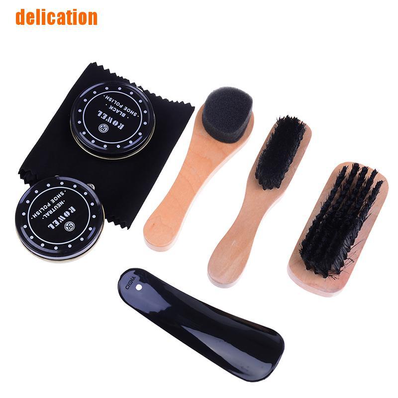 A:6pcs(Shoeshine sponge*1,Shoe brush*1,Shoeshine cloth*1,Shoe horn*1,Shoe polish*1,storage box*1)