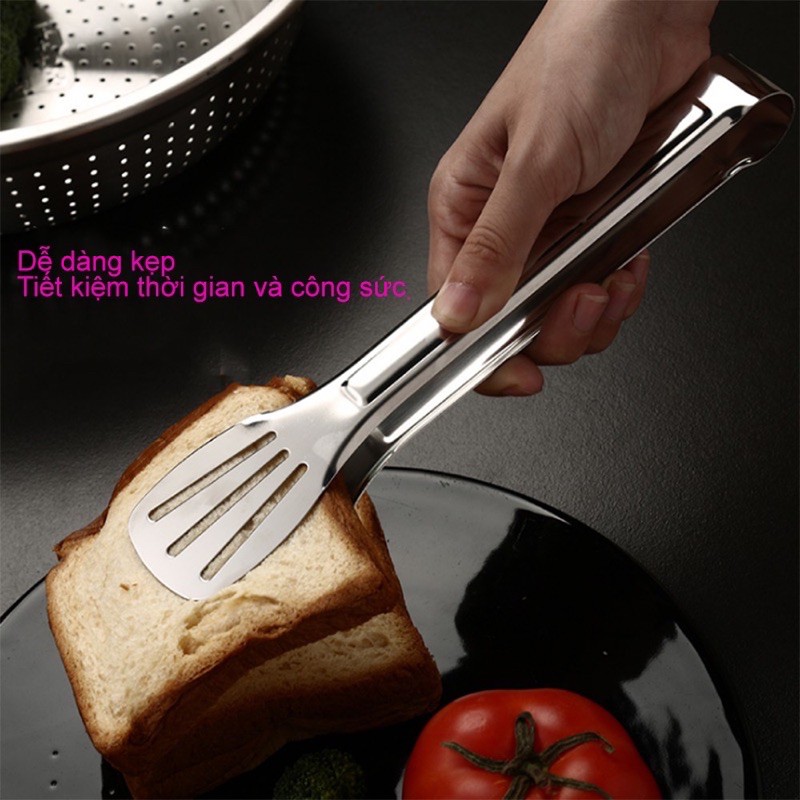 Bộ kẹp gắp thức ăn inox cao cấp là dụng cụ hữu ích trong nhà bếp giúp bạn dễ dàng kẹp, gắp và lật thức ăn. Được làm từ inox cao cấp, có độ bện và khả năng chịu lực cao, không tạo ra các chất độc hại ở nhiệt độ cao, đảm bảo an toàn tuyệt đối cho sức khỏe gia đình bạn. Thiết kế thông minh với tay cầm dài, giúp bạn gắp đồ nóng, đồ nướng một cách dễ dàng. Đầu kẹp có khả năng chống dính, giúp kẹp thức ăn chắc chắn, chống trơn trượt hiệu quả Kích thước :27*3.9cm