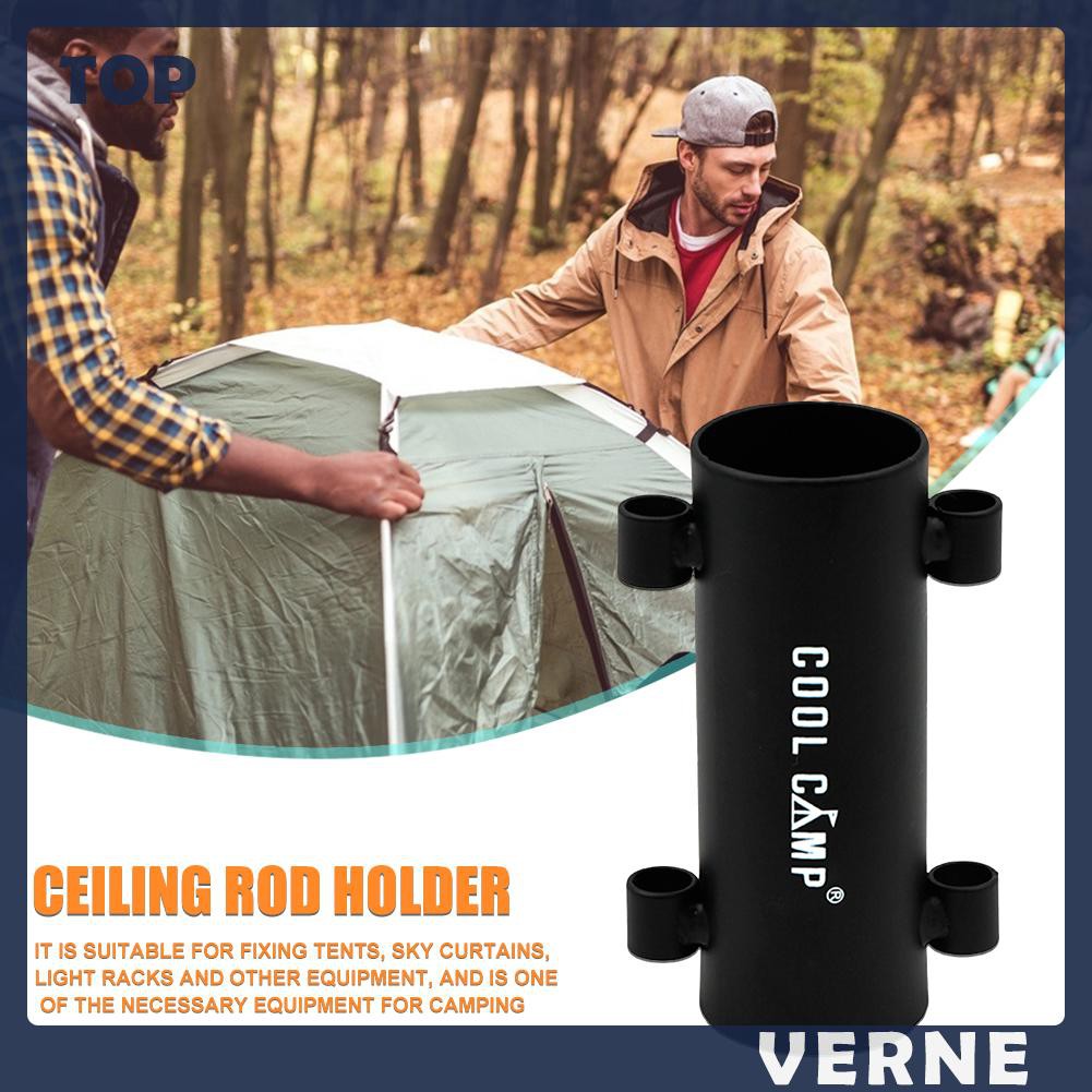Awning Rod Holder Outdoor Camping Fishing Canopy Pole Pipe Fixed Tube Reinforced Windproof Tent Awning Pole Accessories Specification: Material: Iron Size: 10 * 6cm/3.93*2.36in, pipe diameter 3.5cm/1.37in Weight: About 130g Color: Black Tips: It contains only one awning rod holder, no ground nail.
