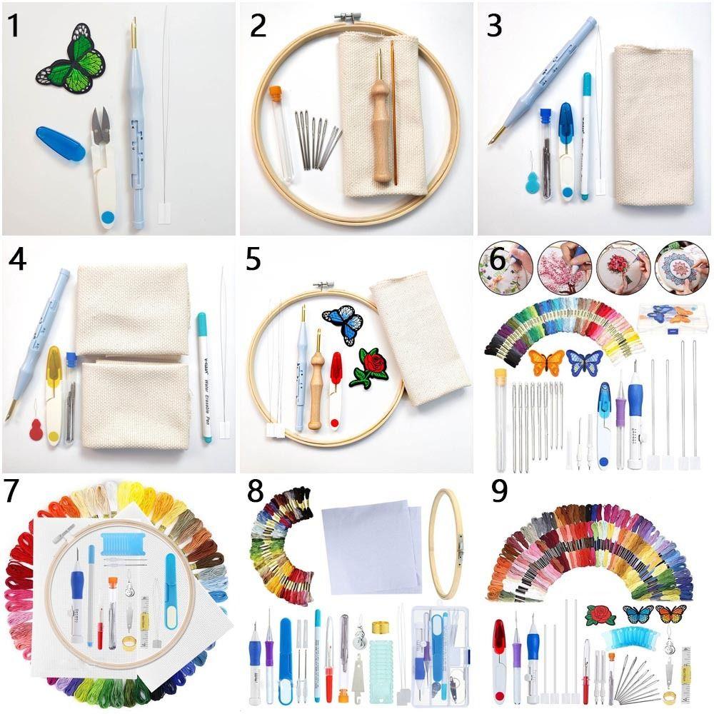 Gói bao gồm - 1 bộ dụng cụ thêu Punch Needle Tool Kit Thêu Khâu Công cụ May Khâu Punch Bộ Punch Punch Kim Công cụ Khâu chọc Chữ thập Thêu Đan Tự làm Thủ công Kim chỉ
