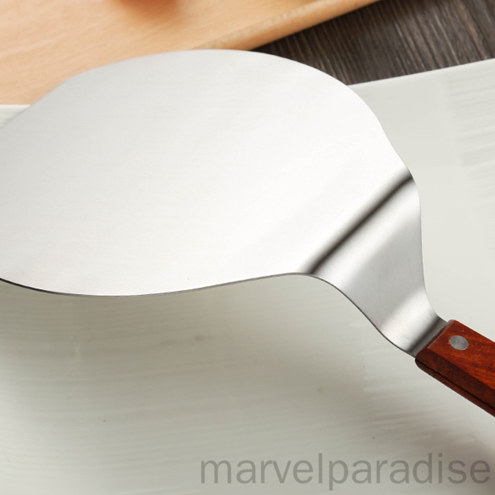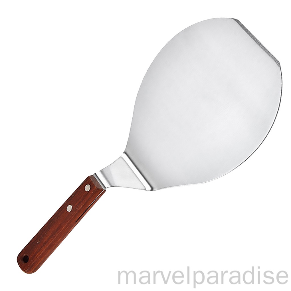 Description: This stainless steel cake paddle can be used on many types of food, such as pizza, pancake, cake, cookies, etc.. The stainless steel pizza paddle is designed to transfer the pizza. You can also use it to flip the pizza. The wooden handle on this stainless steel pizza spatula is comfortable to hold and can prevent scalded. The pizza paddle adopts superior stainless steel and is long-lasting, durable, rust-resistant. The pizza spatula won't easily stick the food which makes it can be washed more easily.