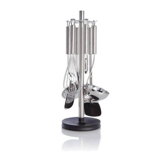 Set 7 món dụng cụ nấu ăn của WMF của đức còn được xem như là 1 vật trang trí hữu dụng tô điểm cho căn bếp. Hình thức đẹp, bóng loáng, thiết kế dạng giá xoay tiện dụng.