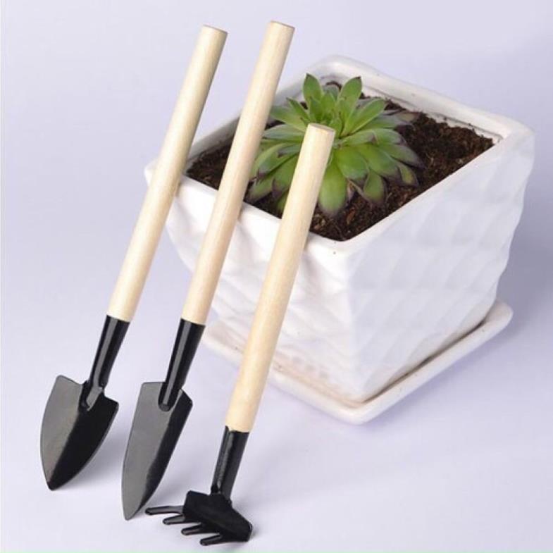 bộ làm vườn,chăm cây cảnh mini rất thích hợp với những ché hay thích làm vườn và chăm cây. không cần tay phải đụng vào nay có bộ dụng cụ siêu mini này sẽ giúp bạn thấy việc làm vườn chăm cây dễ dàng hơn __ chất liệu , cán làm bằng gỗ, xẻng và cào làm bằng kim loại